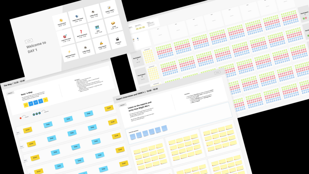 In this template, you will find all the activities of a design sprint laid out with an explanation and recommended itinerary for running the workshops.